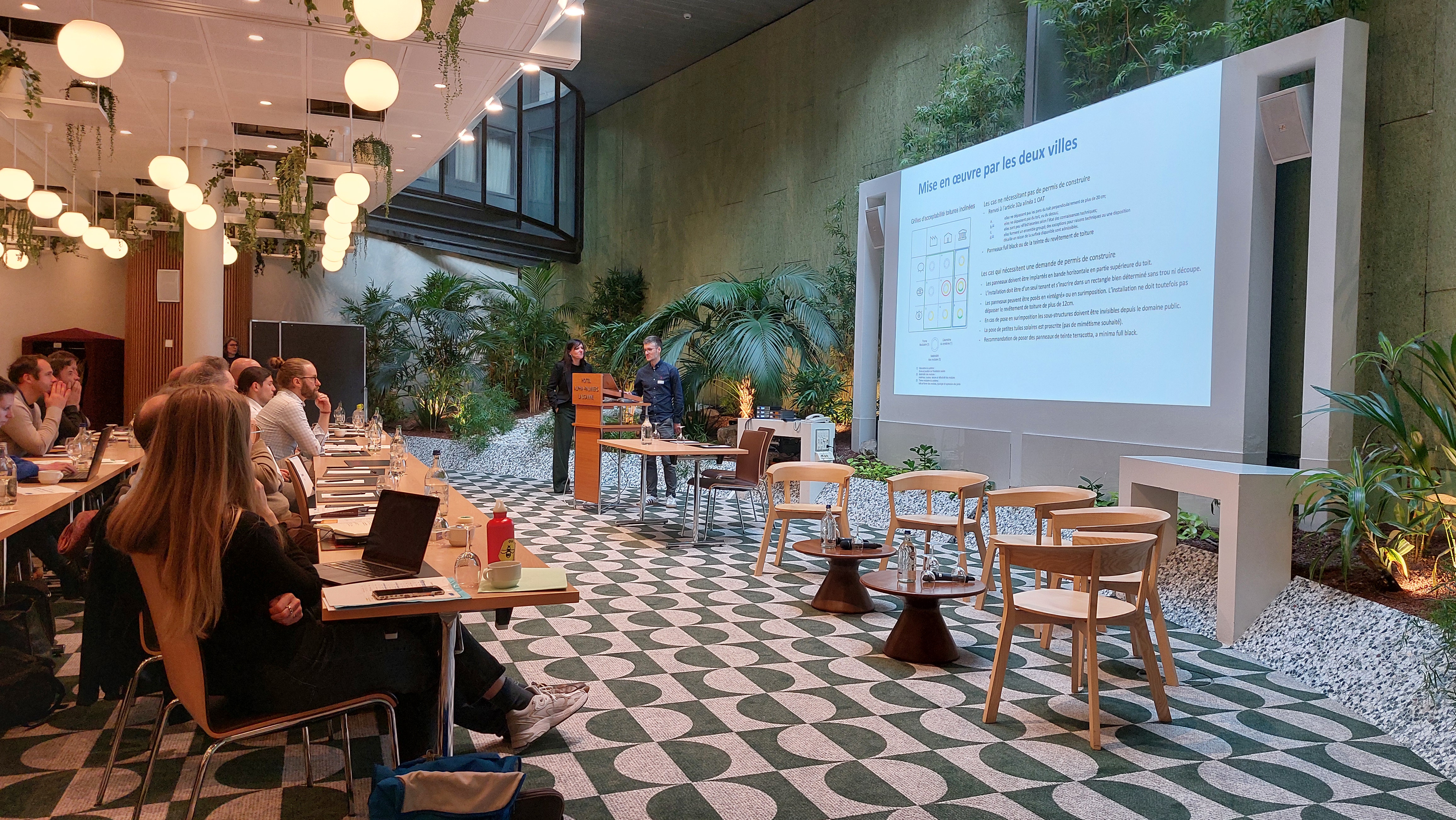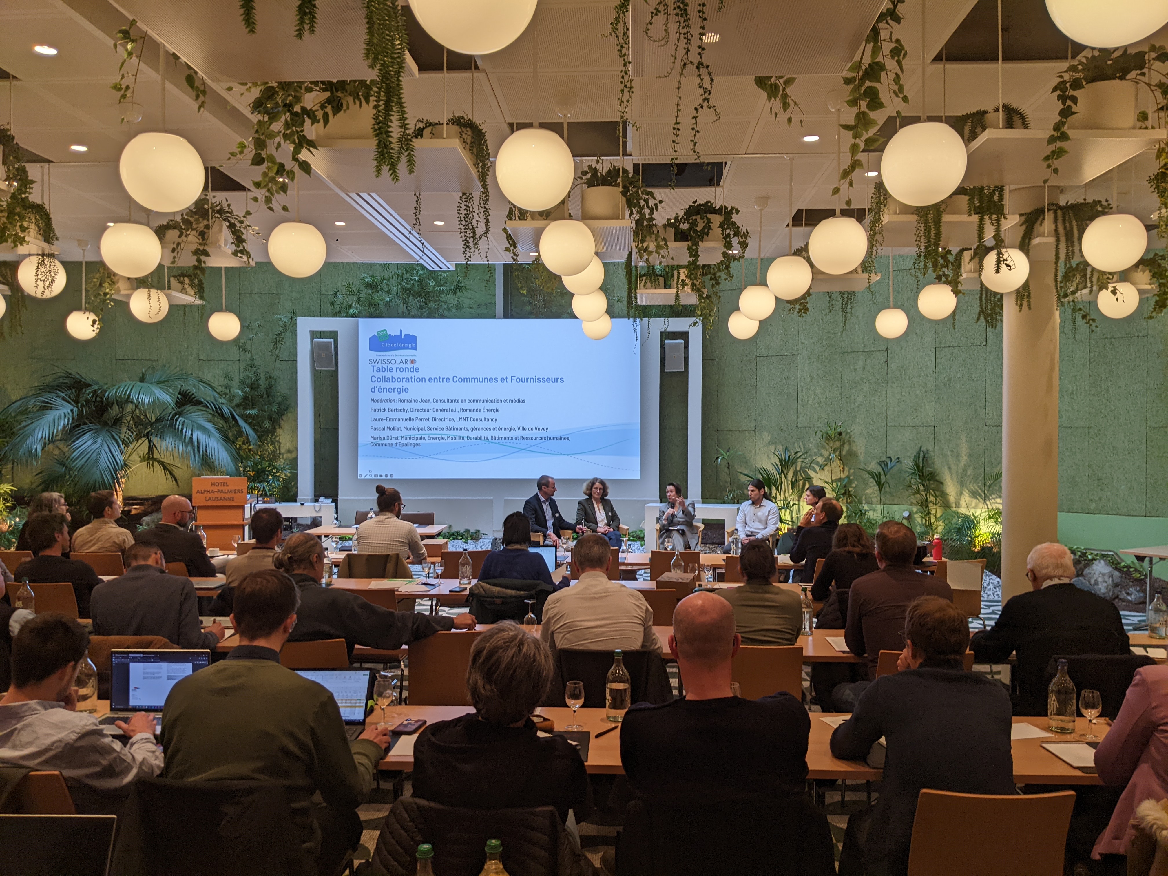 Bio-Éco a coordonné l’organisation du congrès, qui s’est tenu à l’hôtel Alpha Palmiers à Lausanne, avec les interventions passionnantes de 14 intervenantes et intervenants, issu·e·s de communes et de leurs mandataires, de services cantonaux ou fédéraux, de l’Association Cité de l’énergie et de Romande Énergie. Une attention particulière a été mise sur la mise en réseau des différents acteurs de l’électricité photovoltaïque, et sur le rôle à jouer par les communes dans ce domaine en rapide évolution.