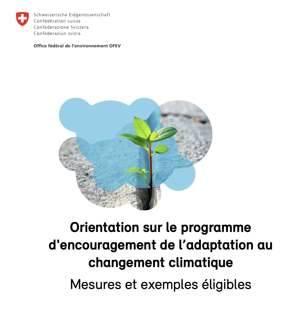 Accompagnement de l’OFEV dans la mise en place du programme Adapt+ par la réalisation d’une liste d’exemples romands de mesures d’adaptation aux changements climatiques. Cette liste a permis d’établir le type de mesures pouvant bénéficier de la subvention et d’orienter les bénéficiaires (communes, cantons) dans leurs demandes de soutien. Le mandat a été mené en collaboration avec Infras qui s’occupait des exemples issus d’autres régions linguistiques et coordonnait le projet.